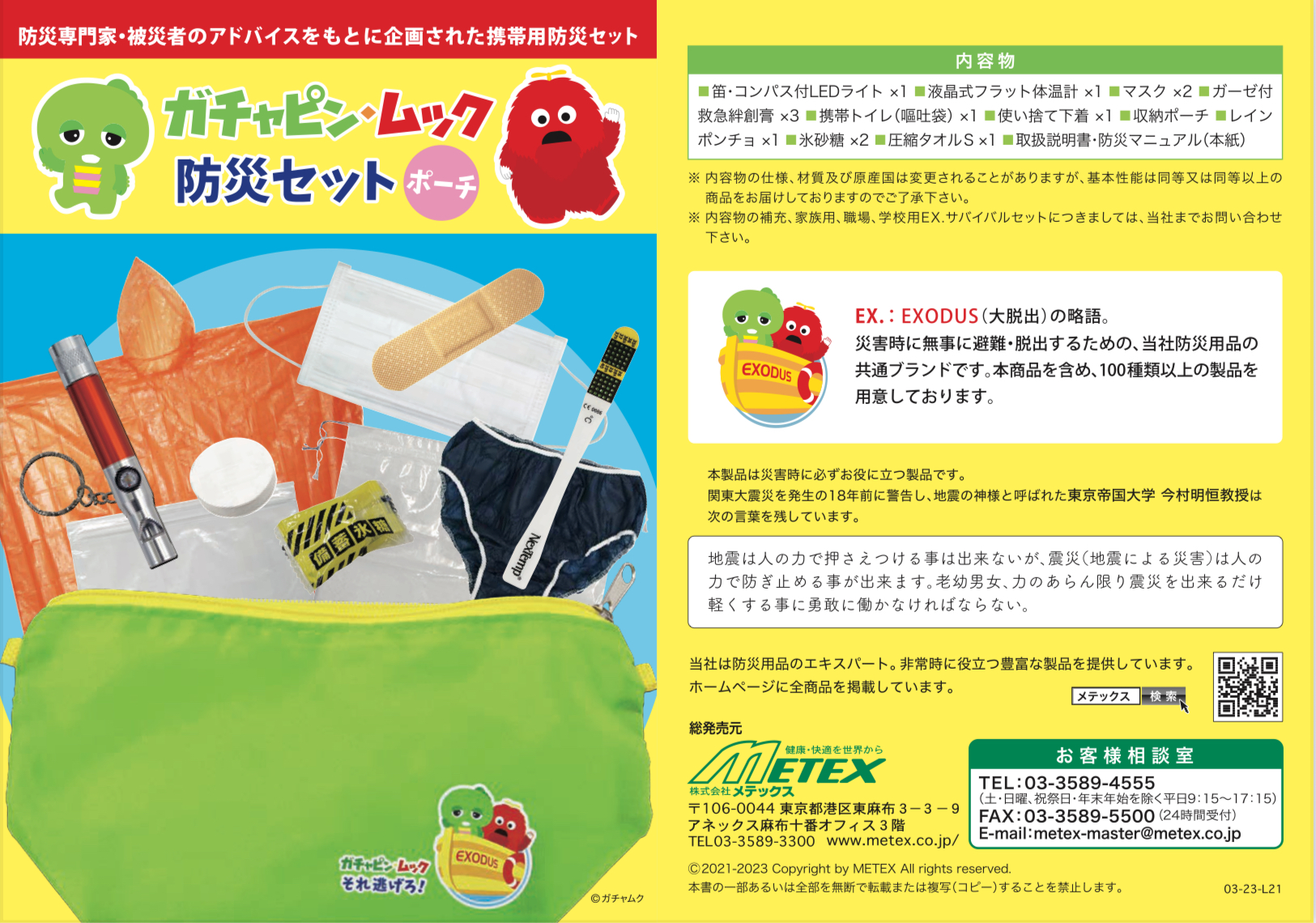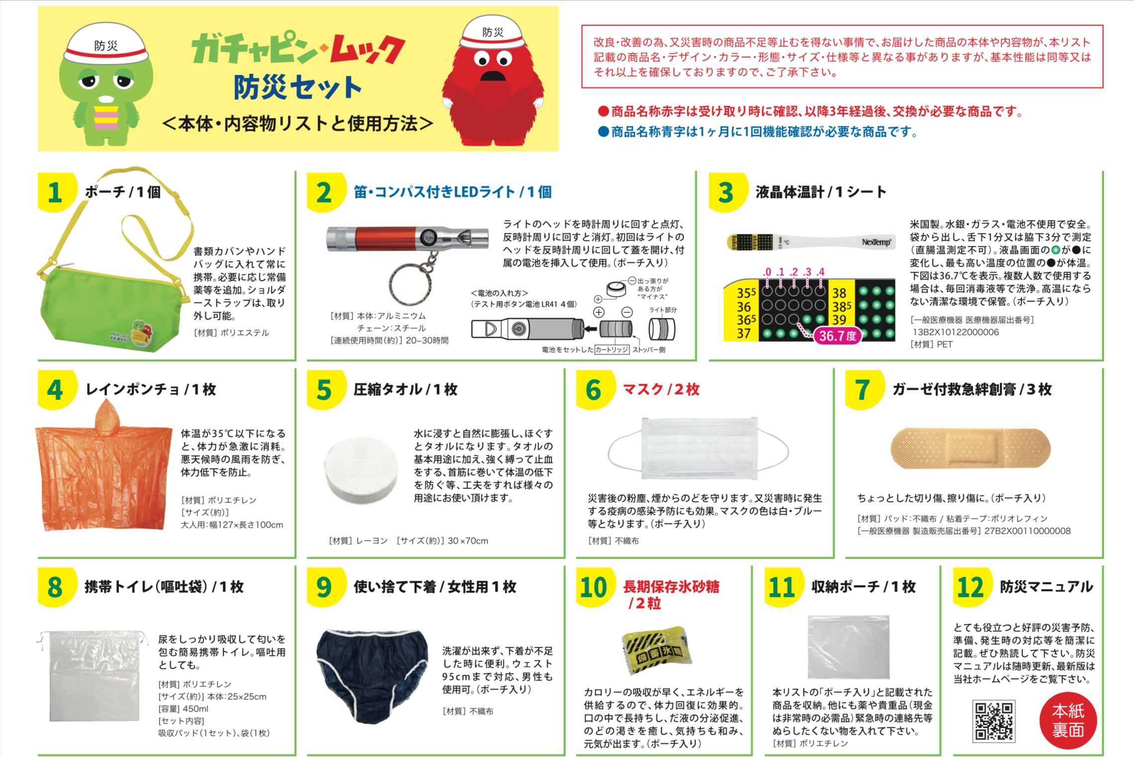 | 「楽しく学べて、しっかり備える」お子様にもぴったりの携帯防災ポーチ! | |