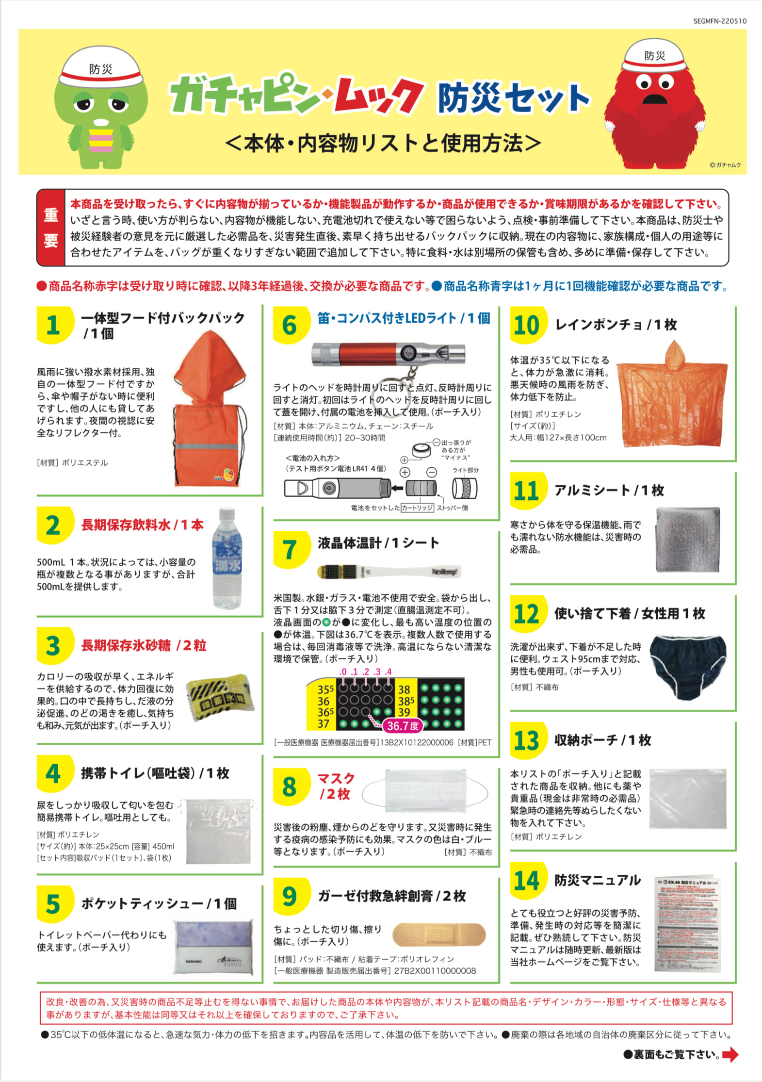 | 🌈ガチャピン・ムック防災セット<バックパック>🌈 | |