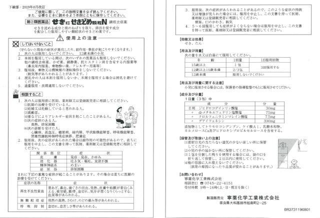 せきを鎮め、痰の排出を促す成分を配合した顆粒状のせきどめ薬です。